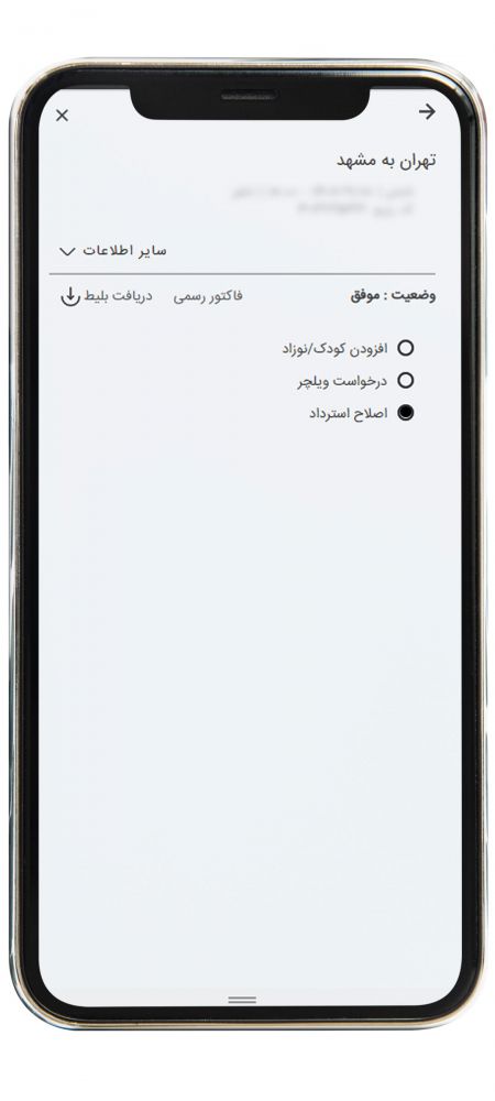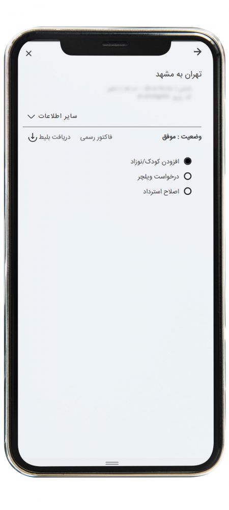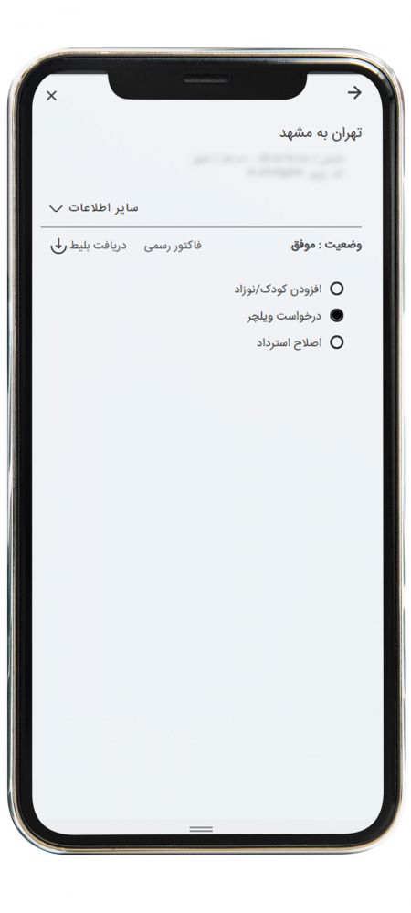 ثبت خواست خدمات ویژه پرواز داخلی از طریق موبایل